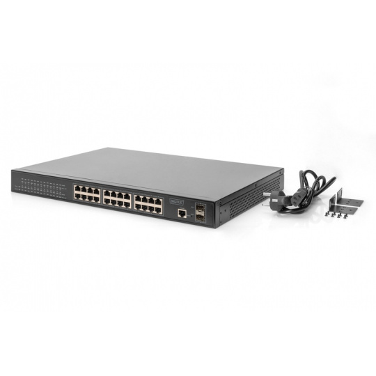 Digitus Gigabitový ethernetový PoE přepínač L2, 24portový PoE + 2 SFP, 380W PoE rozpočet