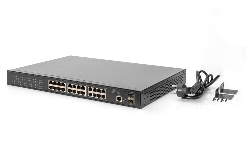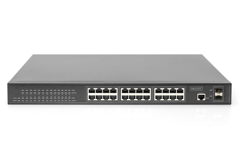 Digitus Gigabitový ethernetový PoE přepínač L2, 24portový PoE + 2 SFP, 380W PoE rozpočet