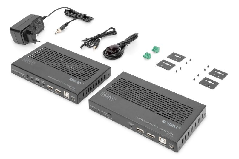 Digitus HDBaseT 3.0 KVM Extender Set, HDMI 2.0b, 100 m USB 2.0, PoC, RS232, IR, eARC/ARC, černý