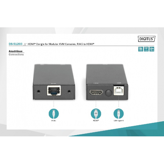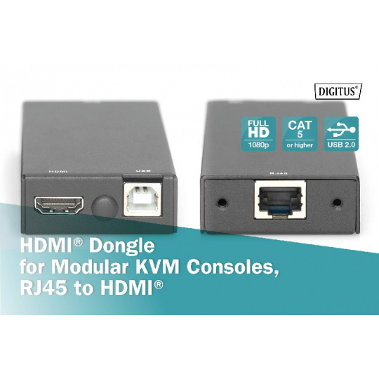 DIGITUS HDMI dongle for modular KVM consoles, RJ45 to HDMI