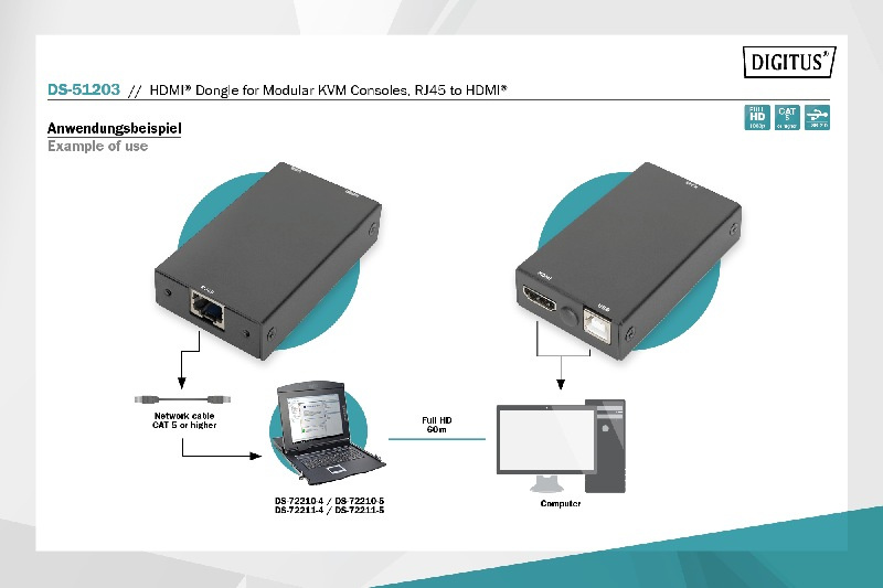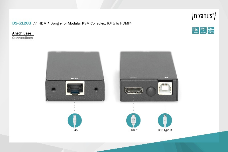 DIGITUS HDMI dongle for modular KVM consoles, RJ45 to HDMI