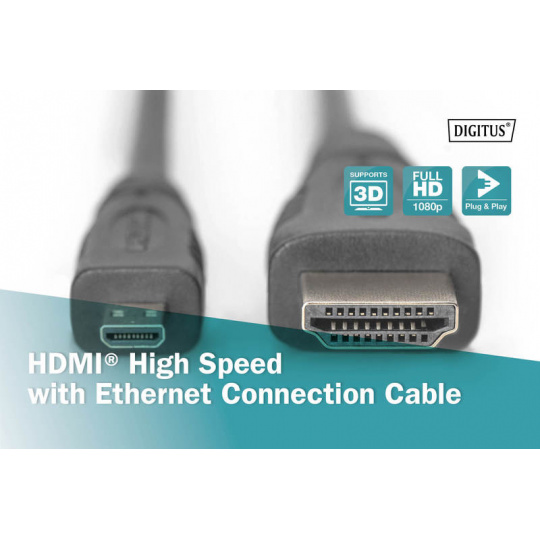 Digitus HDMI High Speed s Ethernetem připojovací kabel HDMI/D na HDMI/A ( standard na micro) , 1m,