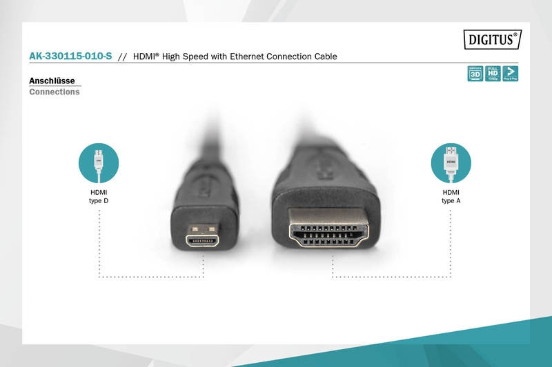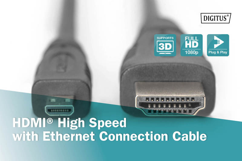 Digitus HDMI High Speed s Ethernetem připojovací kabel HDMI/D na HDMI/A ( standard na micro) , 1m,