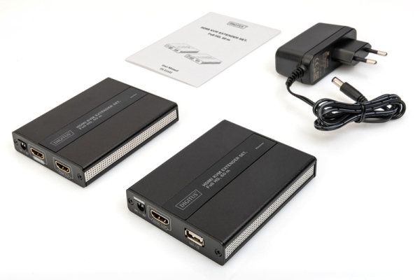 Sada extenderu HDMI s vysokým rozlišením HDMI se skládá z vysílací jednotky a přijímací jednotky. Signál HDMI lze pomocí síťového kabelu prodloužit na maximální vzdálenost 60 m. Kromě toho umožňuje pohodlný přístup ke vzdálenému počítači (myš a klávesnice) prostřednictvím portů USB na přijímacích jednotkách. Skvěle se hodí pro průmyslové, komerční a veřejné aplikace. Zahrnuty jsou také dvě infračervené jednotky (vysílač a přijímač), které umožňují ovládat vstupní zdroj pomocí infračerveného dálkového ovládání.