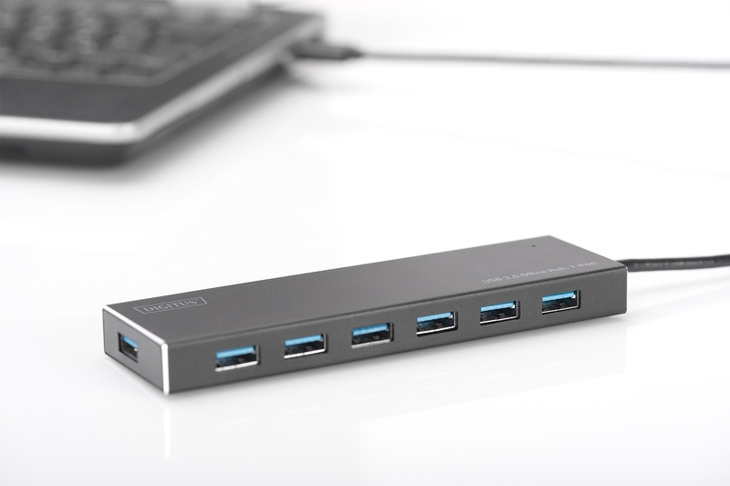 DIGITUS Hub USB 3.0, 7 portů vč. Napájecí zdroj 5V / 3,5A Hliníkový kryt