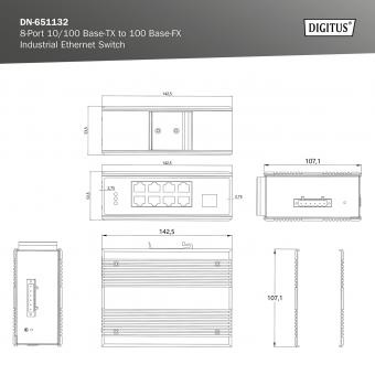 DIGITUS Industrial 8+1 Port Fast Ethernet Switch Unmanaged, 8 RJ45 Ports 10/100 Mbits
