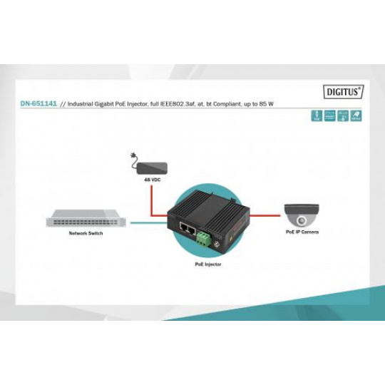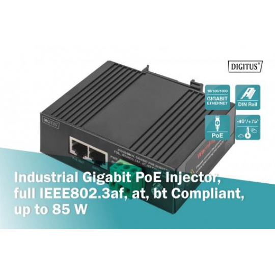 DIGITUS Industrial Gigabit PoE Injector FullIEEE802.3af,at,bt Compliant, up to 85 W