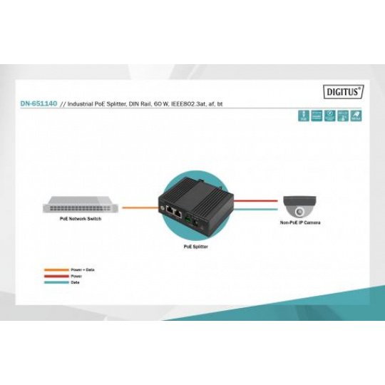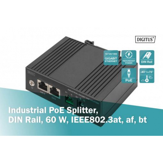 DIGITUS Industrial POE Splitter DIN Rail, 60 W, IEEE802.3at/af