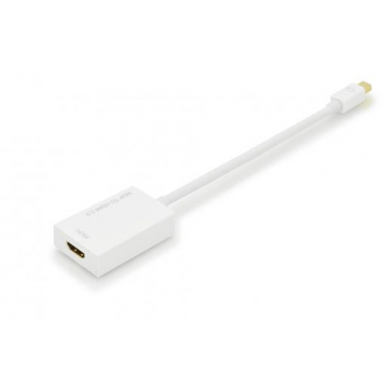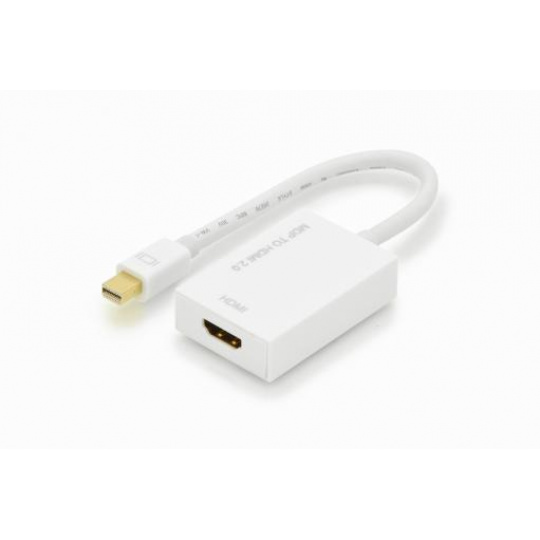Digitus kabelový adaptér DisplayPort, mini DP samec- HDMI typ A samice, 0,2m, HDMI Ver. 2,0, aktivní, CE, zlato, wh