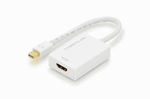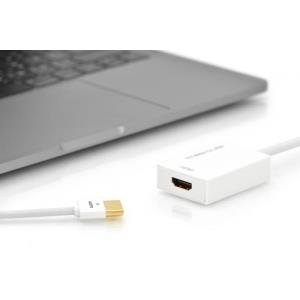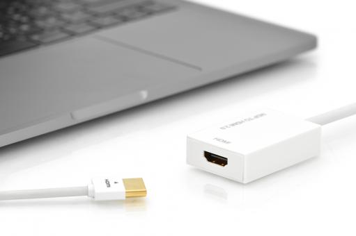 Digitus kabelový adaptér DisplayPort, mini DP samec- HDMI typ A samice, 0,2m, HDMI Ver. 2,0, aktivní, CE, zlato, wh