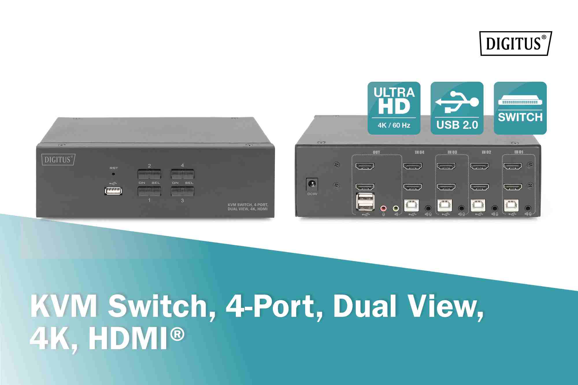DIGITUS KVM přepínač, 4 porty, jeden displej, 4K, HDMI1 x QIG