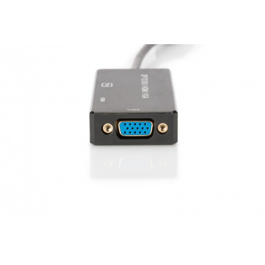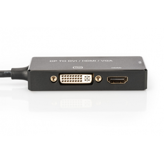 Digitus Mini DisplayPort Kabelový převodník , mDP - HDMI + DVI + VGA M-F / F / F, 0,2m, multimediální kabel 3 v 1, CE, bl, zlato