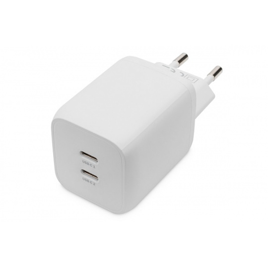 DIGITUS Miniaturní nabíječka USB-C, 2portová, 65W 2x USB-C, 45W+20W, bílá.