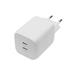 DIGITUS Miniaturní nabíječka USB-C, 2portová, 65W 2x USB-C, 45W+20W, bílá.