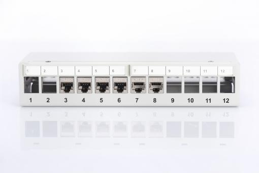 DIGITUS Modular Desktop Patch Panel, stíněný 12 portů, světle šedá
