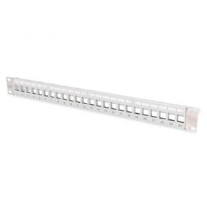 DIGITUS Modular Patch Panel, stíněný, 24 portů, 1U, Rack Mount, transp. štítek pole, šedáModular Patch Panel, stíněný, 24 portů, 1