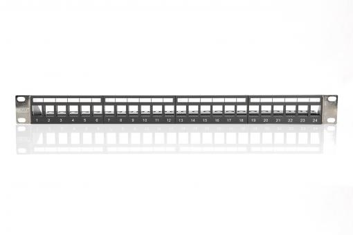 DIGITUS Modulární propojovací panel, stíněný 24 portů, Blank, 1U, Rack Mount, barevná černá průhledná pole štítků
