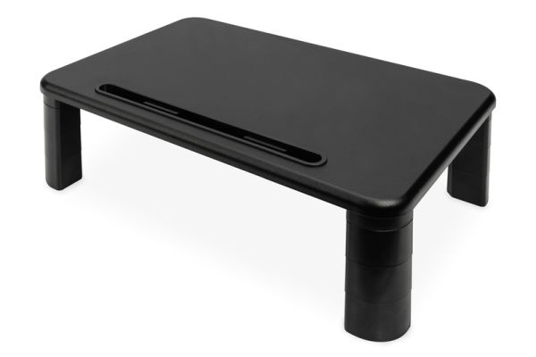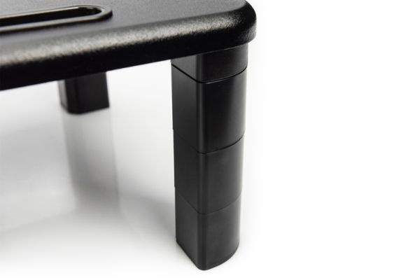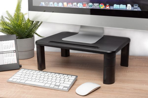 S ergonomickým podstavcem monitoru máte snadno použitelný produkt, pomocí kterého můžete svůj stůl individuálně uspořádat. Modulární konstrukce umožňuje snadno změnit výšku držáku přidáním nebo odebráním podpůrných prvků. Kromě toho je v přední části držák smartphonu a tabletu s otvory pro nabíjení nebo připojení kabelů.