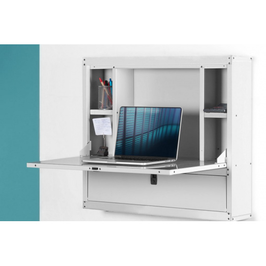 Nástěnná skříň je ideální pro údržbářské pracovní prostory, které se často nepoužívají, a proto je třeba je do místnosti integrovat nenápadně.
