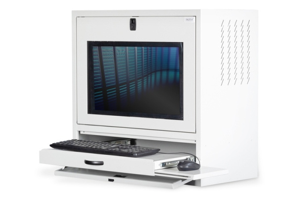 Skříň pracovního prostoru počítače je ideální pro účely, ve kterých by PC a další technologie měly být funkční, ale nikoli volně přístupné, například ve zdravotnictví nebo ve výrobě