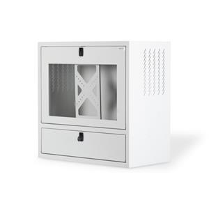 Nástěnná pracovní stanice od společnosti DIGITUS® byla navržena především pro úsporu místa například v kancelářských prostředích, skladech, nemocnicích, laboratořích, hotelech nebo konferenčních místnostech. Je rozdělena na dvě části. Horní část se skleněnými dvířky je uspořádána pro připevnění monitoru pomocí nastavitelné konzoly. Kryt má také prostor pro uložení vašeho počítače / serveru. Druhá část s odnímatelnou policí je vhodná pro skladování a každodenní použití myši a klávesnice. Spodní strana má kabelové vstupy a také předem vyříznutý otvor pro instalaci ventilátoru.
