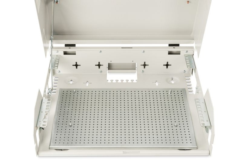 Nástěnné skříně SOHO, Slim jsou ideální pro umístění aktivních a pasivních komponent. Vyznačují se jednoduchou a časově nenáročnou instalací. Moderní design se hodí do každé kanceláře nebo domácnosti. Skříň má 2 samostatné možnosti instalace: Na přední straně je připevněna otočná vertikální 3U lišta. Alternativně může být umístěn také vodorovně nebo šikmo. Na zadní straně je připevněna vodorovná 2U lišta (pevná), kterou lze použít například pro pasivní síťové prvky. Vyražené montážní otvory v celé spodní části pouzdra umožňují instalaci i komponentů, které nejsou kompatibilní s 483 mm (19") (např. DSL routery atd.).