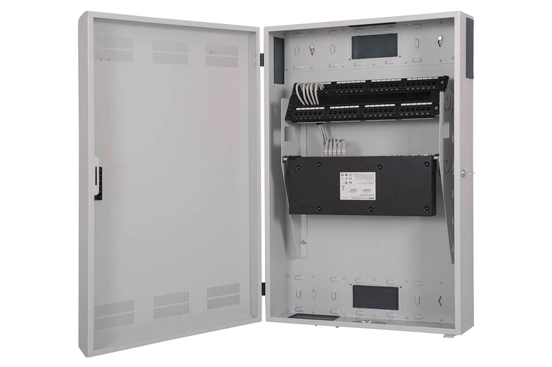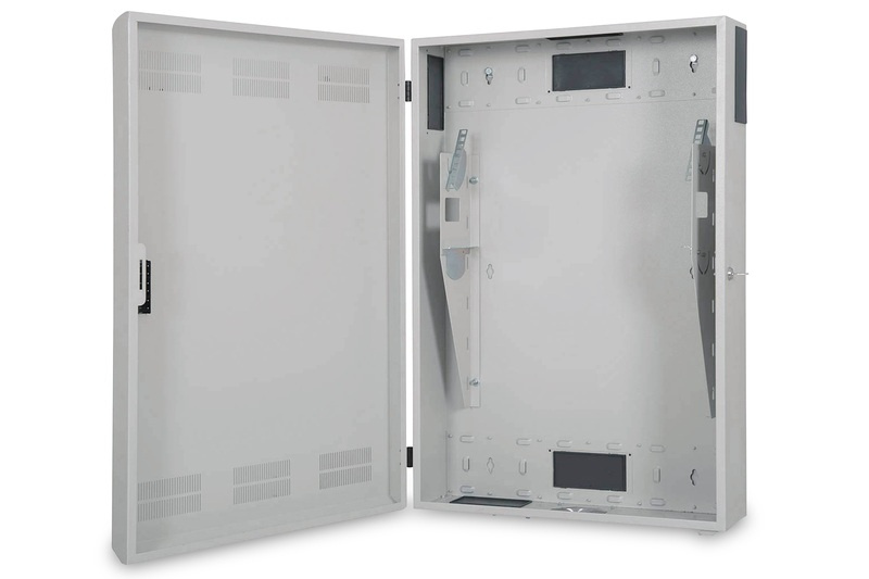 483 mm (19 “) nástěnné skříňky tenké řady umožňují horizontální nebo vertikální montáž 3U se dvěma nezávislými montážními oblastmi pro patch panely, přepínače, směrovače nebo jiné aktivní komponenty 483 mm (19”).