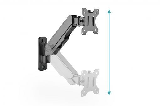 DIGITUS Nástěnný držák pro Jeden monitor plynové pružiny 17-32", 8 kg (max.), černý Vesa 75x100