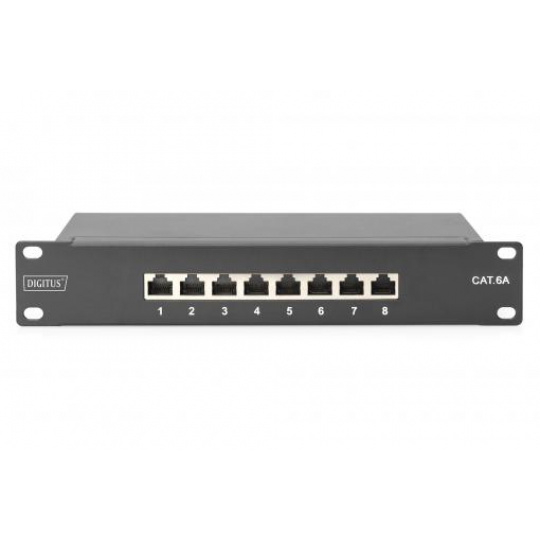 DIGITUS Patch panel CAT 6A, stíněný, 8portový 1U, 10 "montáž do stojanu, černá RAL 9005