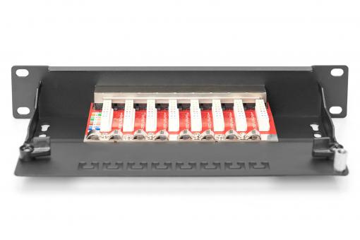 DIGITUS Patch panel CAT 6A, stíněný, 8portový 1U, 10 "montáž do stojanu, černá RAL 9005