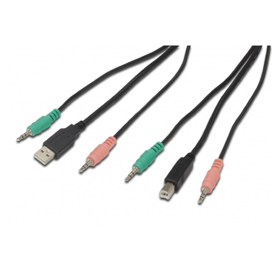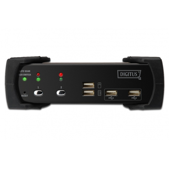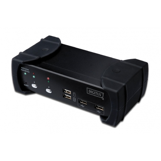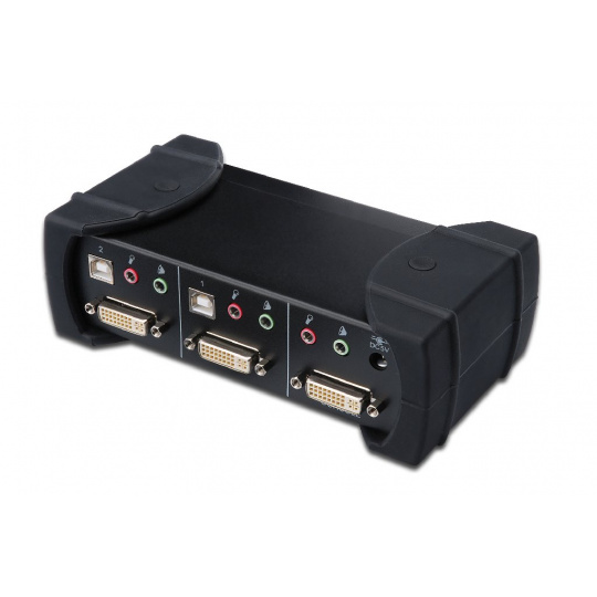 DIGITUS Přepínač KVM, DVI, USB 2-port, 1 uživatel, vč. 4 kabelové sady, 1,8 m, audio
