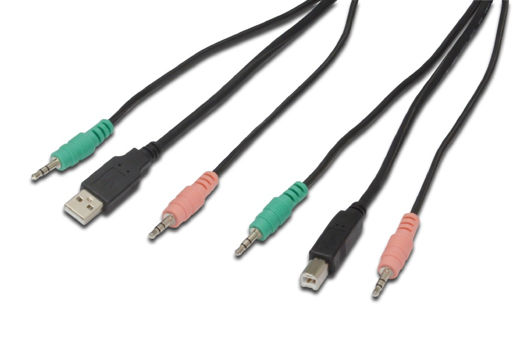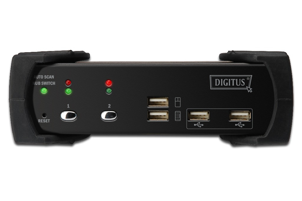 DIGITUS Přepínač KVM, DVI, USB 2-port, 1 uživatel, vč. 4 kabelové sady, 1,8 m, audio