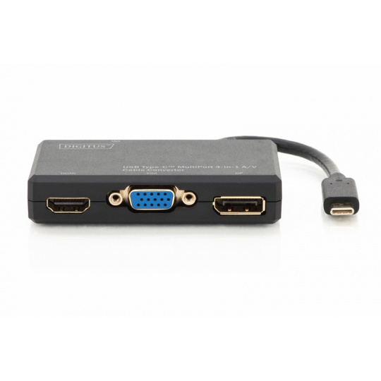 DIGITUS Převodník USB AV 4K Multiport 4v1 0,2 m, vstup: USB typ C, výstup: DP + HDMI + DVI + VGA