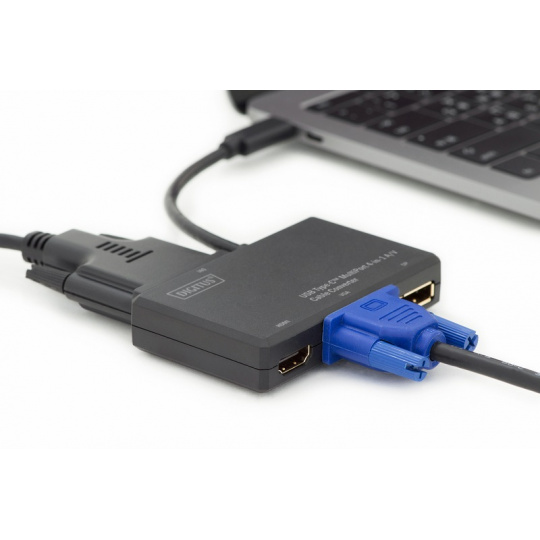 S tímto cestovním adaptérem můžete pomocí rozhraní USB Type-C ™ připojit notebook nebo přenosný počítač k libovolnému displeji HDMI ™, DP, DVI nebo VGA.