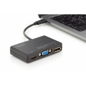 DIGITUS Převodník USB AV 4K Multiport 4v1 0,2 m, vstup: USB typ C, výstup: DP + HDMI + DVI + VGA
