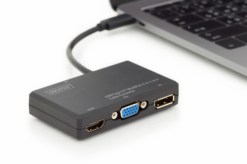 S tímto cestovním adaptérem můžete pomocí rozhraní USB Type-C ™ připojit notebook nebo přenosný počítač k libovolnému displeji HDMI ™, DP, DVI nebo VGA.