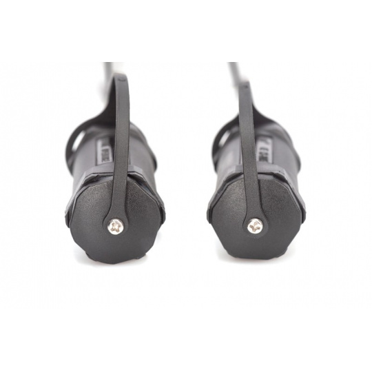 Pokud se kabel nepoužívá, jsou zástrčky chráněny plastovými objímkami se šroubovacím krytem. Certifikát IP68.