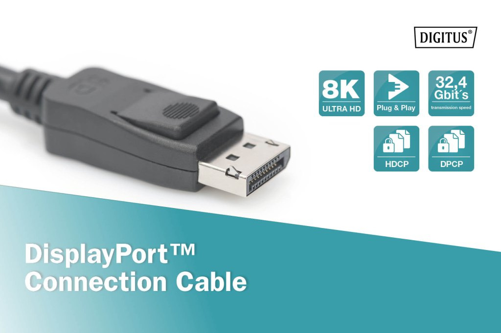S tímto standardem pro kabel podporuje tento kabel DisplayPort všechny dnešní požadavky - od přehrávání obsahu UHD 8K s vysokým rozlišením přes 8kanálový přenos zvuku až po podporu šifrování HDCP a DPCP. Zrcadlete plochu svého notebooku na velkém monitoru nebo ji rozšířte o další displej DisplayPort. Tento vysoce kvalitní kabel umožňuje rychlý přenos dat bez trhání, a to i v náročných grafických aplikacích nebo hrách. Pozlacené kontakty a dvojité stínění kabelu zajišťují maximální vodivost a bezproblémový přenos.