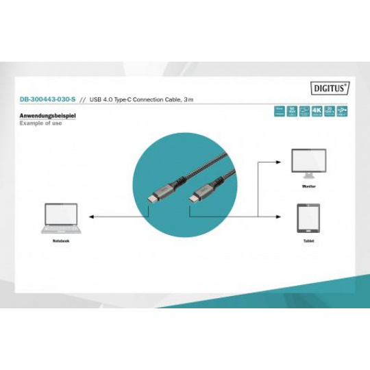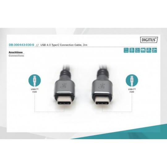 DIGITUS Připojovací kabel USB 4, TypeC na TypeC, AL-Housing PP Braid 4K@60Hz, PD3.0, 20Gbits/s, 3m, bl.