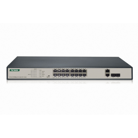 16-port Fast Ethernet PoE Switch + 2G Combo TP/SFP 270W, rack mountable