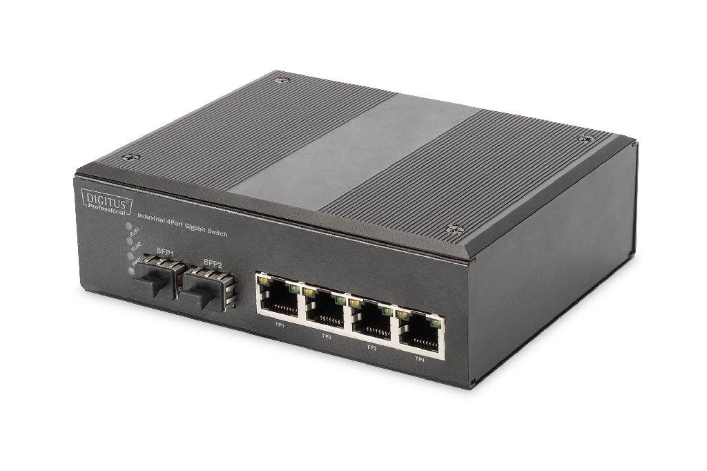 DIGITUS Professional Industrial 4-Port Gigabit Switch with 2 x SFP uplink