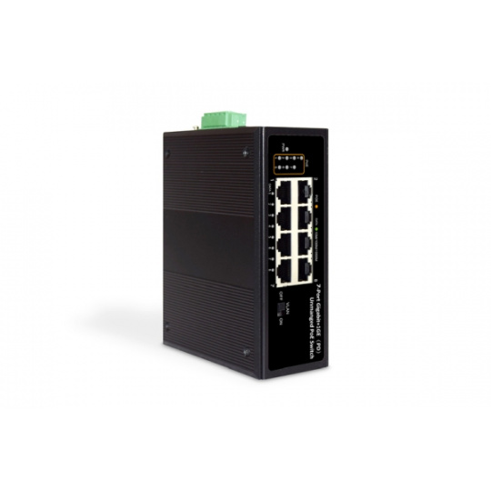 Průmyslový 7portový gigabitový PoE+přepínač+1 PD-port IEEE802.3af/at, DIN lišta, rozšířený teplotní rozsah 240W PoE budget