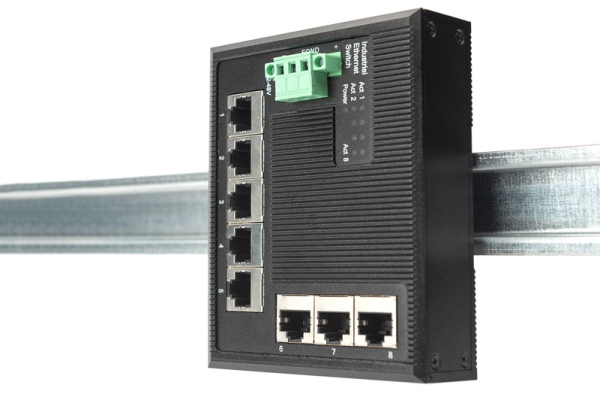 Průmyslový 5-portový gigabitový plochý přepínač 5 portů, DIN lišta, prodloužená teplota. rozsah