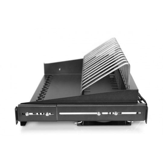 Ideální řešení pro ukládání a nabíjení přenosných zařízení ve standardní síťové skříni nebo serverové skříni.