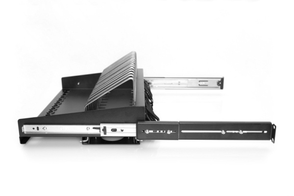 Ideální řešení pro ukládání a nabíjení přenosných zařízení ve standardní síťové skříni nebo serverové skříni.