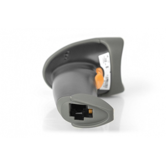 DIGITUS Ruční skener čárových kódů 2D, napájený z baterie, kompatibilní s Bluetooth a QR kódem, 200 skenů / s, s držákem
