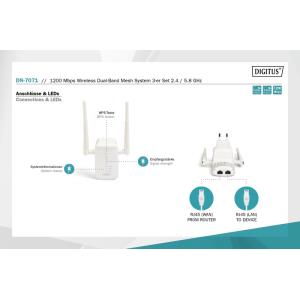 DIGITUS Sada bezdrátového dvoukanálového Mesh systému s rychlostí 1200 Mb/s, 3 ks 2,4 / 5,8 GHz, WPS, 1x Lan, 1x Wlan