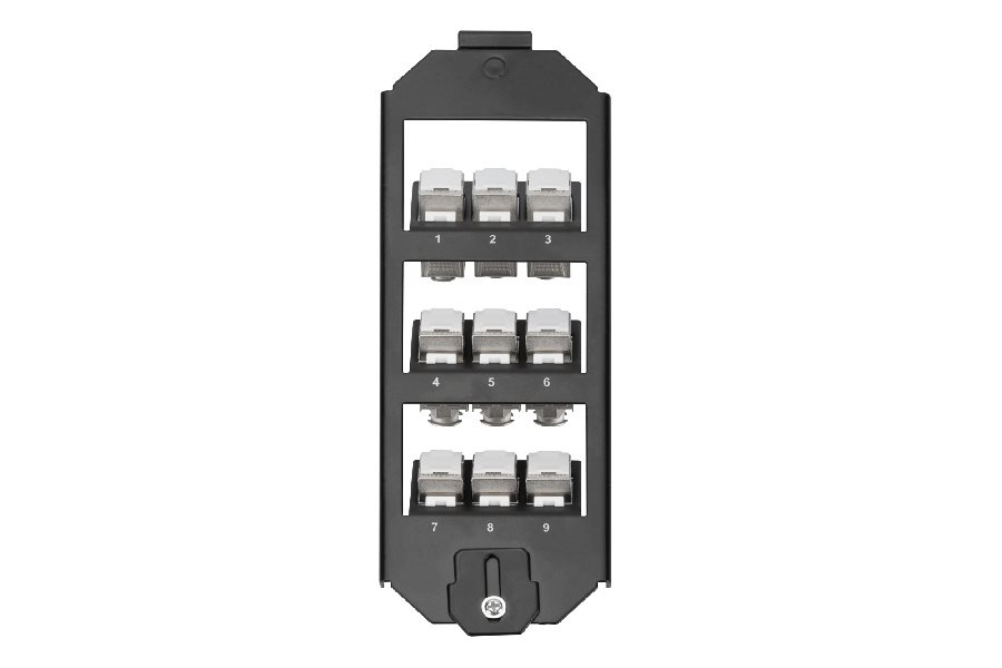 Sady DIGITUS® Frame fungují jako adaptér pro instalaci Keystone modulů. Jsou k dispozici jako dvouúrovňová verze pro 6x Keystone moduly nebo jako tříúrovňová verze pro 9x Keystone moduly.