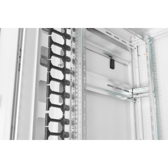 Velkoryse dimenzované vertikální kabelové kanály s vedením kabelů a krytem zabudovaným do čelního panelu