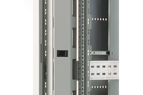 Profilové lišty 483 mm (19 “) namontované na přední a zadní straně uvnitř stojanu, pozinkované